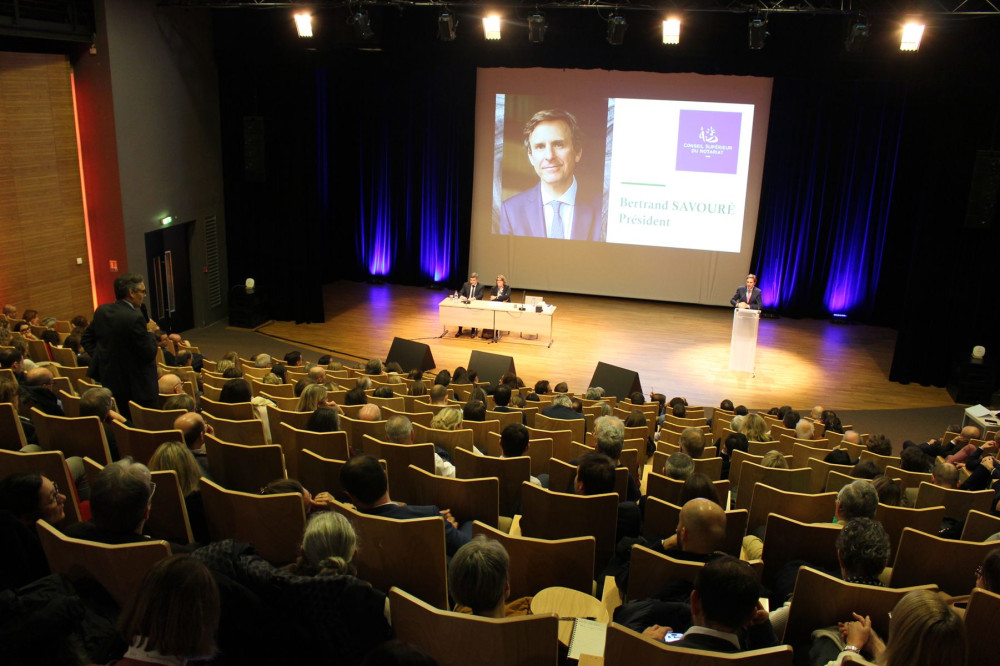 En premier lieu, en tant que président du Conseil supérieur du notariat, Bertrand Savouré a tenu à rassurer l'assemblée picarde en garantissant que «les relations avec l’État sont excellentes». Il assure que lui aussi «porte haut et fort la voix de la profession». À propos d'une saturation du métier, il reconnaît que le nombre de notaires a augmenté, ils sont exactement 17 383 aujourd'hui en France. Mais le président le voit comme «une force collective, économique et sociologique, tout en gardant nos spécificités régionales». La force collective s'affiche dans les chiffres du notariat national, avec un chiffre d'affaires de 9 milliards d'euros, 30 milliards d'euros collectés pour l'impôt, 5 millions d'actes, 55 000 collaborateurs et 7 500 offices.