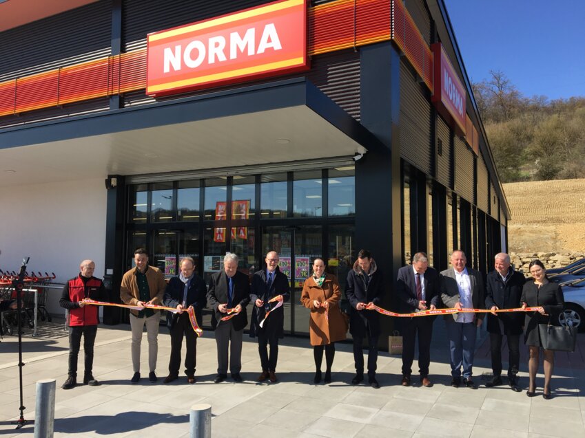 Le mercredi 5 avril a eu lieu la visite inaugurale du magasin Norma à Grosbliederstroff, avenue Marchande. La Moselle a désormais dans son espace géographique le plus important Norma de France en termes de surface commerciale. La nouvelle structure remplace l’ancien magasin de la même enseigne situé à quelques mètres de là. Plusieurs personnalités ont marqué de leur présence cet événement commercial blitharien : Julia Auerswald, directrice générale de Norma France, Volker Winter, directeur Expansion de Norma France, Maxime Petruzzi, directeur des Ventes de Norma France, Pascal Weisslinger, maire de Grosbliederstroff, Marc Zingraff, 1er vice-président de la Communauté d’agglomération Sarreguemines Confluences, maire de Sarreguemines, et des représentants du constructeur Espace Nova. Julia Auerswald rappelle le cheminement : «Le premier magasin Norma à Grosbliederstroff a ouvert ses portes le 12 décembre 2007. A l'époque, nous aurions aimé avoir un local plus grand mais c'était la seule surface disponible dans cette zone très fréquentée. L'offre immobilière était très restreinte dans les alentours. Grâce à un travail de proximité avec tous nos partenaires réunis ici aujourd’hui, nous avons finalement réussi à construire ce nouveau magasin dont nous pouvons tous être fiers, avec un investissement de près de 4 millions d’euros. On peut dire que le passé nous a inspirés à faire le magasin le plus grand de France sur ce territoire. Ce nouveau magasin Norma compte 1 300 m² de surface, contre 635 m² pour l'ancien. C’est un saut qualitatif et quantitatif majeur. D’ailleurs, depuis son ouverture le 29 mars, le magasin ne désemplit pas, le chiffre d’affaires a déjà doublé par comparaison à une période équivalente dans l’ancien magasin.» Volker Winter détaille la logistique humaine déployée : «En termes d’emplois, 12 personnes composent l’équipe du nouveau magasin, contre 7 dans l'ancien magasin, avec 2 responsables de magasin, 1 responsable de magasin adjoint, 1 alternant en management, les autres salariés sont employés comme caissiers employés Libre-Service dont 2 personnes en CDD. Nous comptons dans l'effectif 2 hommes et 10 femmes. Nous allons bien sûr poursuivre dans cette dynamique de développement. Une quinzaine de projets sont en cours, dont par exemple les ouvertures des magasins Norma à Rettel et Uckange qui sont prévues pour la fin d'année 2023.»