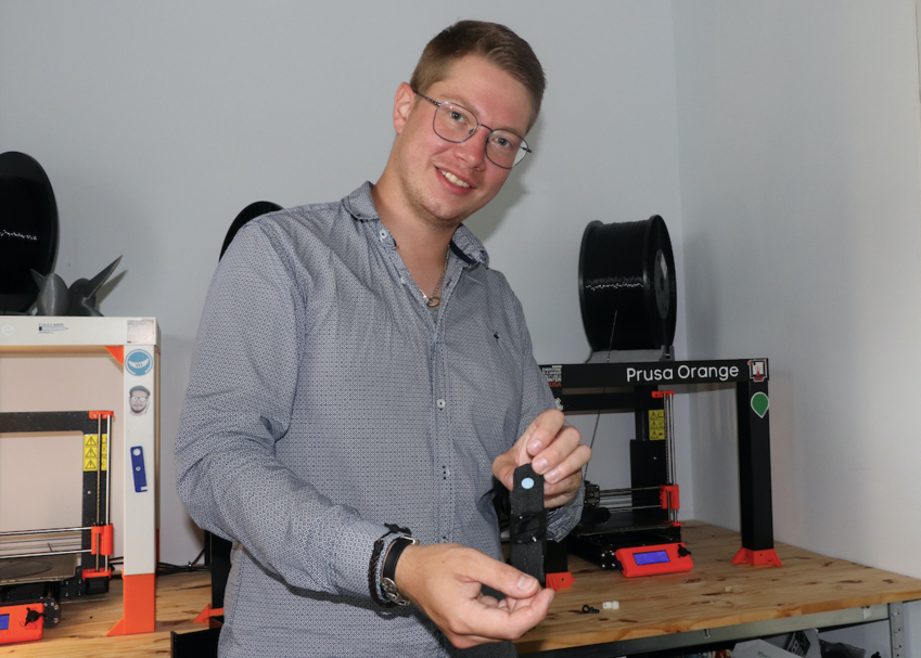 À 27 ans, Benjamin Duvauchel est un chef d’entreprise heureux. Licencié économique, il en a profité pour se lancer il y a un an dans l’entrepreneuriat et vivre de sa passion en créant Artisan 3D. Grâce à son licenciement et à l’aide de Pôle emploi, il a pu avoir avoir accès à deux formations de trois semaines à Lyon puis une d’une semaine sur Paris concernant la modélisation et l’impression 3D. Il possédait déjà une machine 3D grâce à laquelle il avait pu reconstituer une petite pièce permettant à un bras du lave-vaisselle de son père de refonctionner à nouveau.