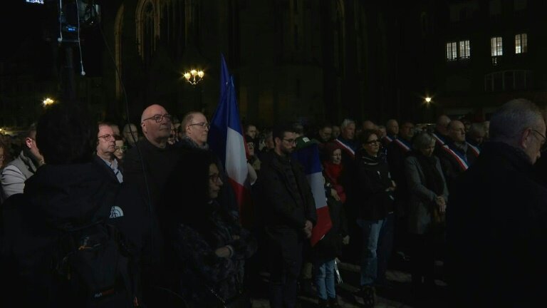"Debouts, solidaires et résilients": des centaines de Mulhousiens ont rendu hommage lundi soir à Lino Sousa Loureiro, tué samedi dans un attentat, et salué "l'intervention exemplaire" des policiers, qui ont permis l'interpellation de l'assaillant sans faire usage d'arme à feu.