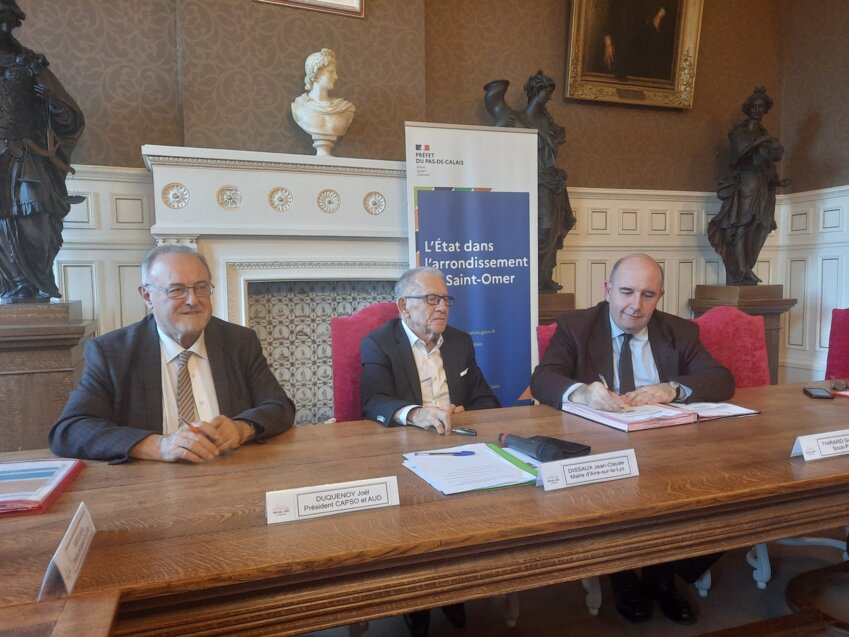 Il y a eu le temps de la création des agglomérations. Aujourd’hui est venu le temps des petites villes. Le 17 novembre dernier, dans la salle du conseil de la mairie d’Aire-sur-la-Lys, avait lieu la signature de la convention Opération de Revitalisation du Territoire/Petites villes de demain (ORT). Étaient présents le sous-préfet du Pas-de-Calais, Guillaume Thirard, le président de la Communauté d’Agglomération du Pays de Saint-Omer (CAPSO), Joël Duquenoy et, bien évidemment, le maire d’Aire-sur-la-Lys, Jean-Claude Dissaux.