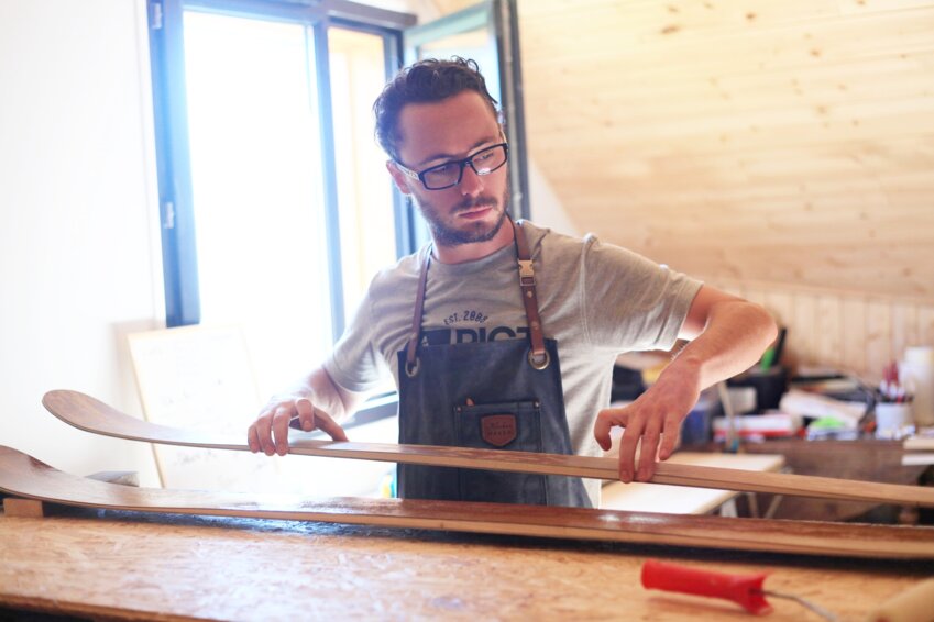 Après la saison de ski, Jules Hadorn quitte le magasin pour fabriquer durant l’été une vingtaine de paires uniques et personnalisables pour répondre aux commandes passées pendant l’hiver. « Les clients choisissent la taille, le type de ski, la rigidité ou le flex, mais aussi le visuel. » En fonction du niveau et du profil du skieur, la marque Allinwood apporte la réponse attendue. « On peut tester les skis à la station pendant la saison pour essayer la glisse et avoir une idée avant de commander. »