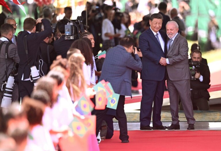 Lula a accueilli mercredi en grande pompe Xi Jinping en visite d'Etat à Brasilia pour marquer le rapprochement entre Brésil et Chine, sur fond de "turbulences" engendrées par le prochain retour de Donald Trump à la Maison Blanche.
