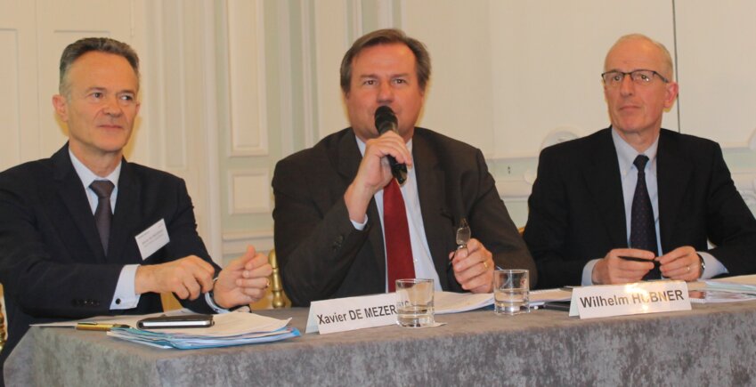 Xavier de Mézerac, président non exécutif d'Oney, Wilhelm Hubner, directeur général d'Auchan Retail, et Benoît Lheureux, directeur général d'Immochan.