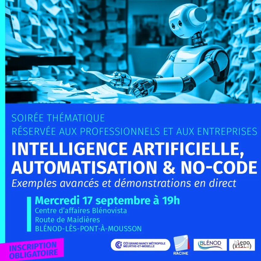 Organisée par la Chambre de Commerce et d’Industrie (CCI) Grand Nancy Métropole Meurthe-et-Moselle, en partenariat avec la Ville de Blénod lès-Pont-à-Mousson, cette rencontre est destinée aux entreprises pour mieux comprendre et d’intégrer ces technologies dans leur quotidien professionnel.