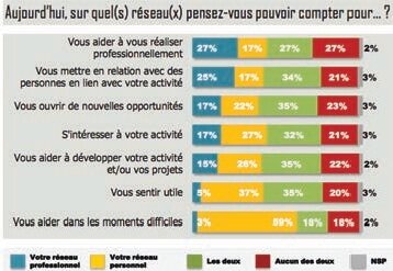 Le meilleur outil de développement. L’étude réalisée apporte aussi un certain nombre de précisions quant à l’utilisation de ces différents réseaux et l’image que l’on se fait de la qualité des contacts qu’ils permettent. Ainsi, en fonction des secteurs, le réseau professionnel est souvent important en taille, mais les contacts et les échanges peu approfondis (voir graphique). Chacun peut le constater, durant une carrière professionnelle les Français sont amenés à travailler avec des dizaines, voire des centaines de personnes pour des rapports qui vont souvent à l’essentiel mais qui sont considérés généralement comme étant subjectifs. Seul le temps permet de les réunir. Le réseau personnel, lui, en constitue l’opposé. “Avec le temps, les réseaux professionnels et personnels s’entrecroisent forcément, explique Marc-William Attié, directeur de BNI France et Belgique francophone. En effet, un individu peut très bien échanger avec ses proches sur une question professionnelle et avec ses collègues sur une question plus personnelle. Le temps renforce les liens entre des collaborateurs et les discussions de travail sont de plus en plus présentes lors de discussions entre amis.” Conclusion en forme d’espoir ? Seul le mix des multiples réseaux permettrait une visibilité optimale à son profil et à ses compétences, et ce, pour un plus grand bénéfice en termes d’échanges commerciaux et profitables.