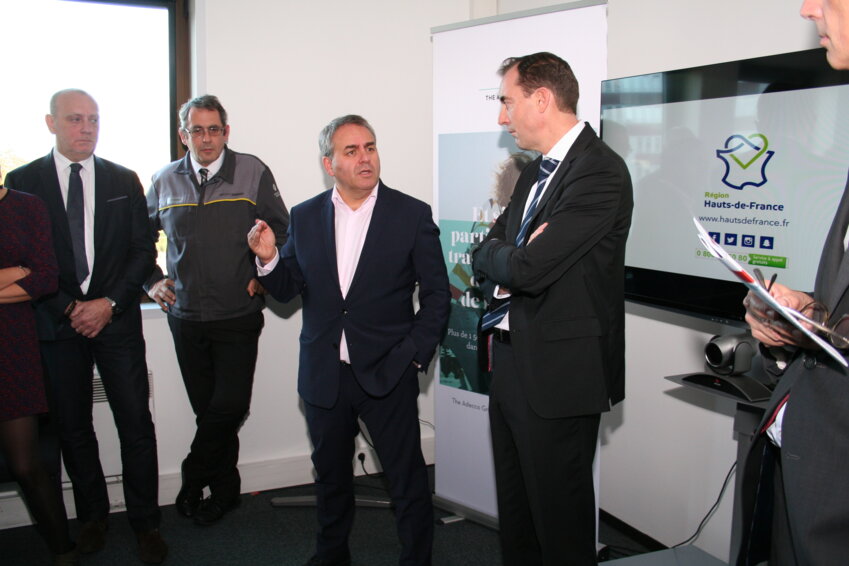 Légende photo : De gauche à droite, Eric Moriss, responsable emploi du pôle industriel Nord chez PSA, Vincent Guarandelli, responsable emploi du pôle industriel Nord chez Renault, Xavier Bertrand et Christophe Catoir.