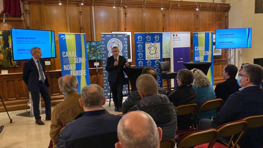 Dans l’Oise, le Canal Seine Nord Europe (CSNE) se creuse petit à petit. Ce projet est pensé depuis 2017, les premiers travaux pour aménager les axes routiers ont débuté en 2021. Et en octobre, les travaux sur l’Oise - concernant le secteur 1 - ont été lancés. Le jour même, une réunion publique départementale s’est tenue pour faire le point avec les entreprises et les habitants. Plus d’une centaine de participants étaient présents et ont échangé avec les équipes du CNSE.