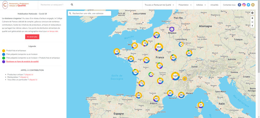 En réponse à la fermeture des restaurants, qui a contraint tout un réseau de professionnels de la restauration à réagir dans l’urgence, le Collège Culinaire de France, fondé en 2011 par 15 chefs français, a lancé dès le 25 mars une carte interactive recensant près de 1 200 points «pour se nourrir de produits frais ou cuisinés de qualité sur toute la France.» Près de 60 établissements du Grand Est y figurent. Consultée plus de 200 000 fois et mise à jour en temps réel, cette carte se place comme un outil pour le consommateur à la recherche d’établissements labellisés restaurant, artisan ou producteur de qualité, désireux d’associer «le bon» et «le local.»