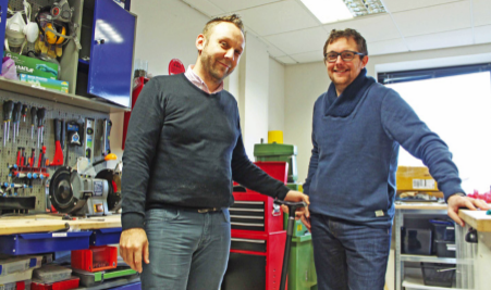 Ci-dessus, Stéphane Demeerseman, gérant de RD2 innovate aux côtés de Paul-Etienne Méligne, designer d’Unistudio. Loin d’être un objet i-tech, la canne noire se veut discrète. Mais une déclinaison de gamme est actuellement en réflexion.