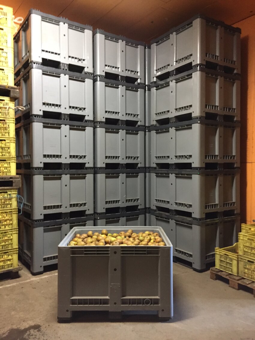 La technologie Janny MT baisse de manière passive, grâce aux fruits et légumes eux-mêmes, l’oxygène qui les entoure tandis que le couvercle apporte le niveau nécessaire pour éviter leur fermentation. « La membrane réduit le niveau d’oxygène de 20,9 % dans l’air à 3 %. Le module apporte aussi un niveau d’humidité requis pour que le produit ne perde ni poids ni qualité. » Les caisses Janny MT, d’une capacité d’un mètre cube environ, peuvent contenir 50 kilos d’épinards, 150 de cerises et jusqu’à 300 kilos de pommes.