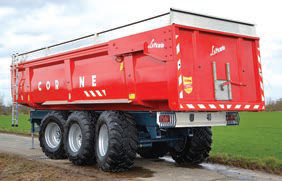 Le confort, l’adhérence, la stabilité sont devenus importants pour les professionnels d’autant que les 40 km/ h peuvent être atteints sur les routes, si les tracteurs sont équipés du freinage pneumatique : « Les gens veulent aller de plus en plus vite », affirme Marie-France Corne. Corne, c’est aussi des épandeurs pour le fumier, composts… qui sont bien souvent achetés en CUMA ou par des entrepreneurs qui travaillent à façon : « Les nouveaux modèles grâce aux cadres d’éjecteurs verticaux peuvent épandre jusqu’à 6 mètres de large », explique Marie- France Corne. L’entreprise Corne, qui pratique la reprise du matériel, ne connait pas la crise, même si les affaires sont difficiles à négocier, grâce au cours élevé des céréales. La marque rouge-orangé et bleue n’en a pas fini d’être présente dans les champs ou sur les routes.