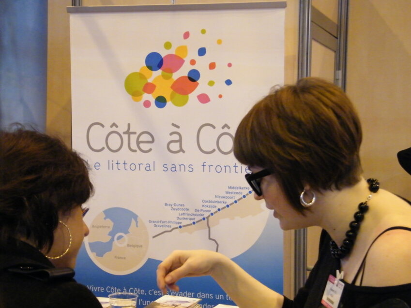 «Côte à côte, le littoral sans frontière» est une ambitieuse opération de promotion touristique menée conjointement par le Dunkerquois et la Flandre-Occidentale. «L’idée est de valoriser un territoire transfrontalier et de proposer une large offre d’équipements, de culture et de nature. Les deux parties de la Côte sont fortement complémentaires», explique Pascale Montefiore, coordinatrice du projet et membre de l’Agence de l’urbanisme de Dunkerque. Sur le stand, les badauds, d’abord sceptiques, sont attirés par le stand installé sans complexe parmi ceux d’autres régions et de pays étrangers. La côte flamande a de quoi séduire avec cinq capitales à moins de 350 km les unes des autres et la mer comme argument phare.
