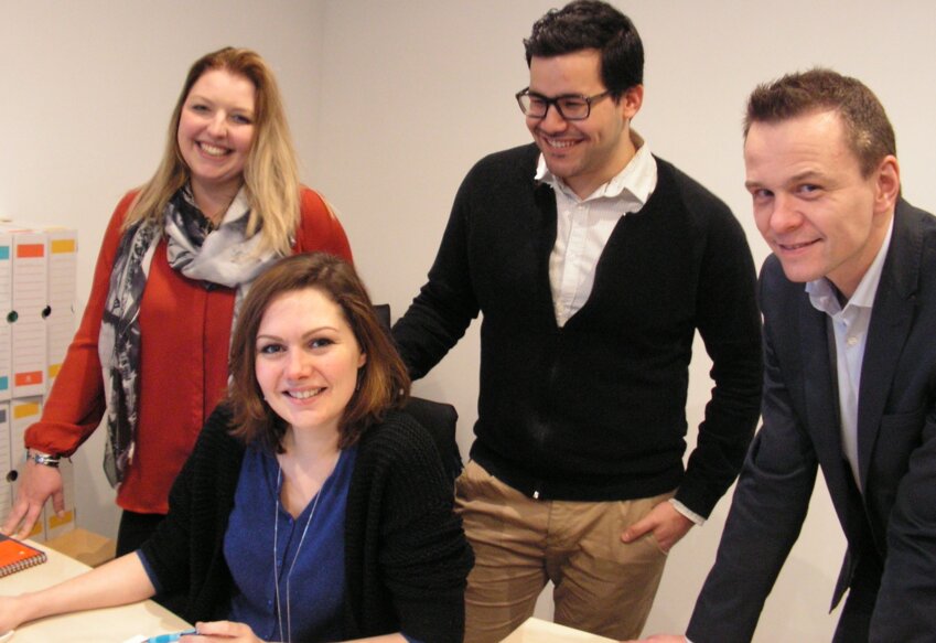 De g. à dr. : Elodie Wacquier (négociation avec les fournisseurs), Laetitia Leclercq (gestion relation clients), Abdelhamid Chaouch (communication marketing) et Olivier Tainmont (fondateur et gérant).