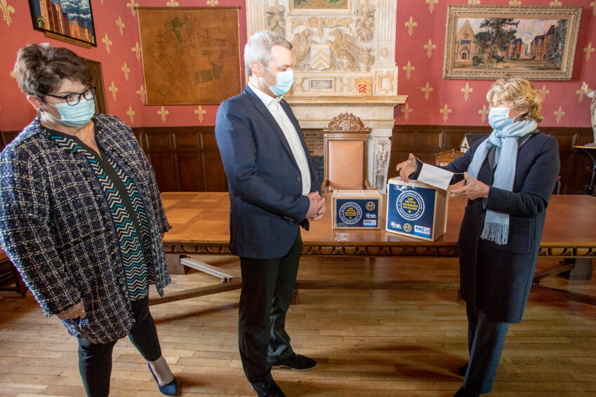 La remise des premiers “petits masques solidaires” a eu lieu le jeudi 5 novembre 2020. Destinés aux enfants scolarisés dans les 15 classes de l’école élémentaire Henri-Villette de Crèvecoeur-le-Grand. Au total, deux cartons de masques lavables ont été reçus soit plus de 600 masques.