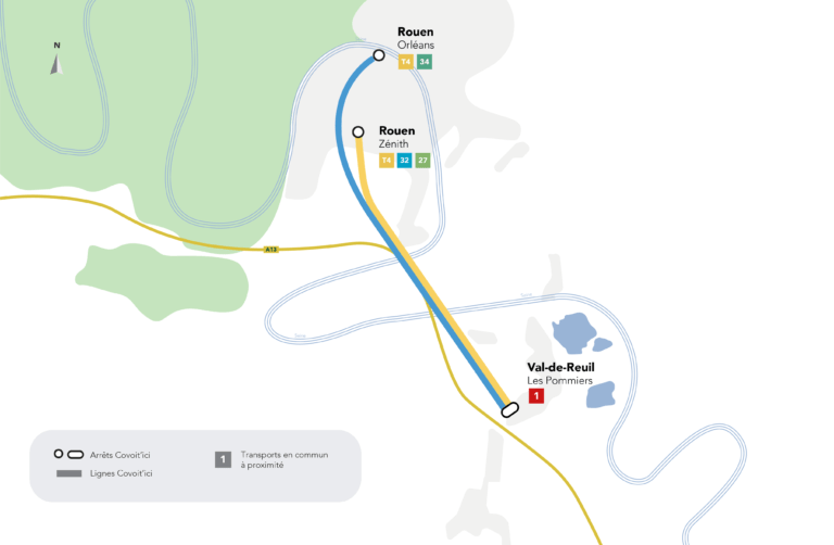 Covoit'ici permet aux passagers de bénéficier du covoiturage entre la ville de Rouen et de Val-de-Reuil du lundi au vendredi, et ce, de 6h30 à 8h30. Dans le sens inverse, le service, développé par la société Ecov, est accessible de 17h à 19h.