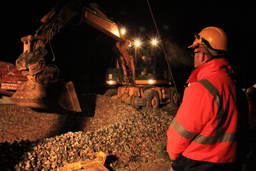 Le village de Feuillères dans la Somme est endormi. Il est presque 1h du matin. Il faut lever les yeux pour voir le chantier. Des ouvriers circulent sur une plate-bande large de moins d’un mètre. D’un côté, il y a les voies de chemin de fer et de l’autre un ravin. Les engins de chantier s’activent dans le bruit des freins des véhicules de chemin de fer de la société Meccoli. Les voies, vieilles d’une vingtaine d’années, disparaissent petit à petit. «Dix-huit mètres de part et d’autres des appareils de dilatation sont enlevés», explique Mathieu Debuires, directeur régional Nord-Pas-de-Calais/Picardie pour RFF. Ces appareils de dilatation sont disséminés avant et après le viaduc de Picardie. L’ouvrage d’art de 300 mètres permet le passage de la ligne à grande vitesse reliant Paris à Lille.