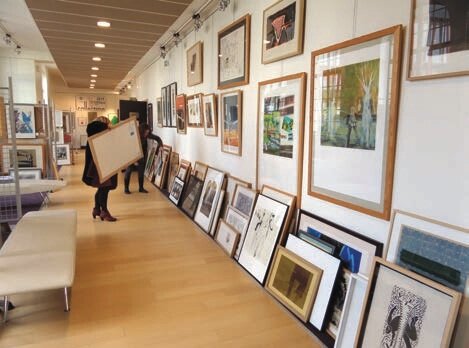 Les adhérents viennent échanger les œuvres d'art à la Médiathèque de Tergnier qui accueille l'Artothèque dans ses locaux.