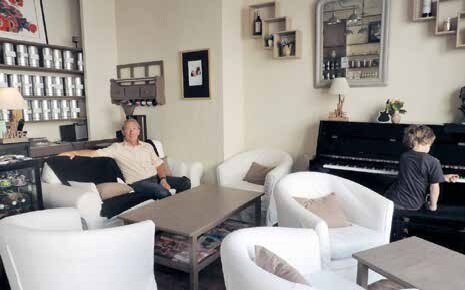 Les hôtes (charmants) sont tout sauf des bobos élitistes. Ils n’ont qu’une crainte : que le cadre que l’on entrevoit derrière les portes vitrées, n’impressionne au point de faire rebrousser chemin. Car “Ma Nature” ressemble à une maison que l’on aimerait habiter. Un salon parsemé de fauteuils blancs et cosy, un parquet ambré et un piano noir, puis en enfilade, une salle à manger bercée par un lustre de famille, une verrière d’artiste sous laquelle repose un vaste comptoir et une longue terrasse (100 m²) en bois bordée d’arbrisseaux. « Nous pouvons y faire une trentaine de couverts et 35 à l’intérieur, sans parler du salon. » Un musicien de passage s’exclame : « On se croirait à Saint-Paul de Vence ! » Sous un des larges parasols violets, Jacques Gary rosit de plaisir tandis qu’Irina s’affaire entre salon et terrasse où s’attardent quelques clients. « Nous employons le serveur du salon de thé, mais nous nous occupons aussi du service. Je fais la plonge et Irina, la cuisine. » Tartes salées, salades composées, plat du jour roboratif, quelques touches russes (comme Irina), et côté épicerie, thés et cafés Damman et crus bio.