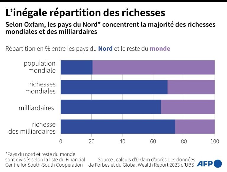 Les cinq plus grandes fortunes sur la planète ont vu leur patrimoine doubler depuis 2020, dénonce l'ONG Oxfam lundi avant la réunion annuelle du Forum économique mondial à Davos, appelant les Etats à moins subir l'influence des ultra-riches sur la politique fiscale.