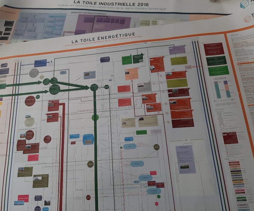 Après plusieurs années de travail, paraît en 2009 la première Toile industrielle©, un document en format poster sur lequel apparaissent toutes les industries du territoire. Y sont mentionnés leurs productions, leurs sous-produits, le nombre de salariés, leurs flux énergétiques, leurs fournisseurs, leurs clients et surtout leurs interdépendances. «C’était la première fois que nous avions une vision aussi détaillée de l’écosystème du territoire et des liens créés – ou qui pouvaient être créés – entre les industriels», se rappelle Jean-François Vereecke, qui insiste sur l’importance qu’a pris cet outil dans la promotion du territoire. «Les équipes du port de Dunkerque s’en servent très régulièrement, par exemple, pour démontrer les atouts industriels du territoire. Et il est avéré que ce document a participé à l’implantation d’entreprises dont les gérants ont pu comprendre très vite quels bénéfices ils pouvaient tirer des interactions avec leurs voisins. Je pense notamment à Ecocem ou à Indachlore sur notre zone industrialo-portuaire. Tout récemment encore, cette Toile a été utilisée pour anticiper les difficultés liées à la crise sanitaire, notamment dans le secteur de l’acier et de l’automobile.» Cet outil est d’autant plus utile que, depuis 2018, il a désormais une déclinaison numérique grâce au Toilemaker, une application développée par la start-up local Les Possibilizer. Les données peuvent ainsi être mises à jour quotidiennement par l’AGUR, un travail dont le coût en termes de moyens humains et financiers est pleinement assumé au vu des retombées pour le territoire.