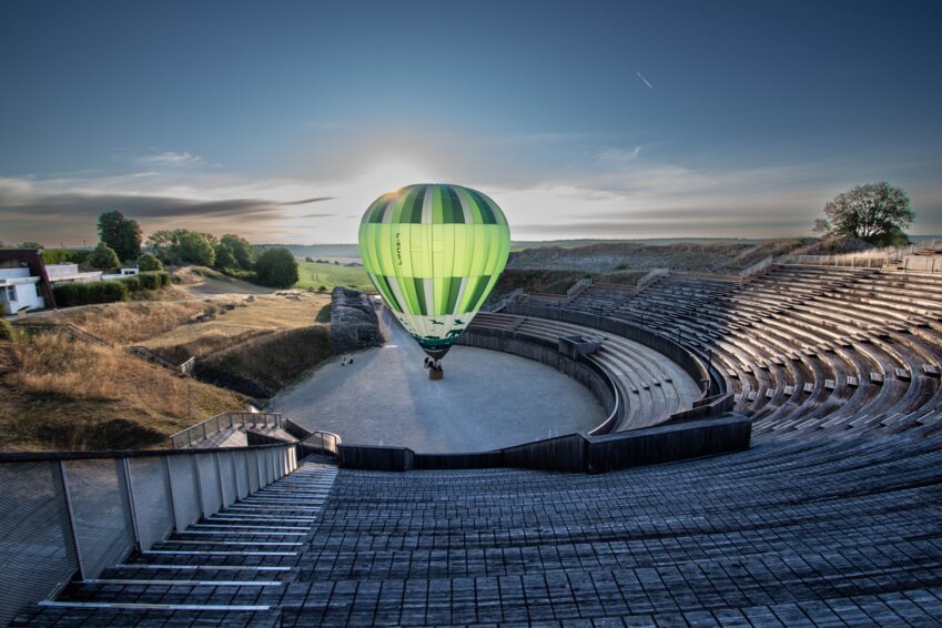 Une expérience inédite. Portée par l’Office de tourisme de l'ouest des Vosges et la compagnie de transport en Montgolfière North East Balloon, spécialiste des envols depuis des sites touristiques de Lorraine, cette initiative a pour vocation de mettre en lumière le territoire et à faire connaître l'amphithéâtre gallo-romain de Grand. Uniques, ces vols en aérostat permettent de découvrir autrement ce fameux site historique datant du premier siècle et les paysages incontournables de l’ouest vosgien. L’offre touristique inclut également des vols nocturnes, un mercredi sur deux, une visite des endroits autour de Jeanne d'Arc à Domrémy et une nuit en chambre d'hôtes. En complément de cette initiative, North East Balloon propose, à la demande, des vols matinaux depuis l’amphithéâtre antique de Grand.