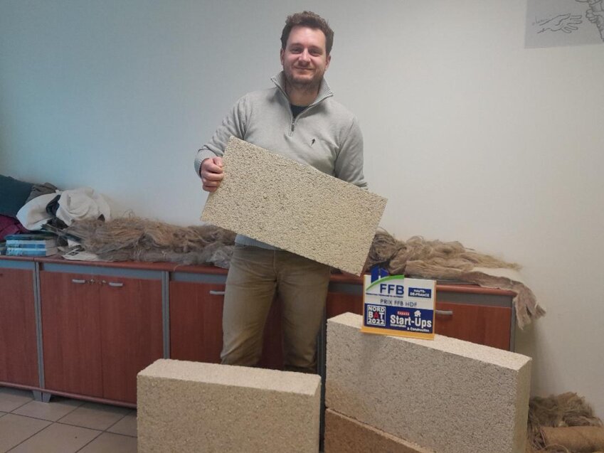 Bâtilin©, qui se présente sous forme de rectangle de type « parpaing » non porteur de 10 à 30 cm d’épaisseur, est biosourcé, local, à fort pouvoir isolant, capable de capter la chaleur, régulateur d’humidité et à bilan carbone négatif (lors de sa croissance, le lin absorbe du CO2 et le process de fabrication du Bâtilin© ne demande pas de chaleur). «C’est vraiment un matériau d’avenir à l’heure de l’entrée en vigueur de la RE 2020 qui impose la réduction des passoirs thermiques, veut privilégier l’utilisation de matériaux biosourcés et met en place un seuil d’émission de carbone qui sera de plus en plus bas pour la construction de bâtiments», commente Julien Gilliot.