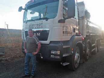 C’est à l’aide d’un camion bi-benne 8×4 nouvelle génération que Patrick Deweerdt arpente les routes de l’Oise. Il transporte du béton pour construire des parkings, des routes, des trottoirs ou encore des lotissements. Sa benne peut contenir jusqu’à 17 tonnes de béton. La technique est toujours la même : « Je dépose le béton sur la route par exemple et je compresse avec un rouleau et de l’eau froide dans le même temps pour qu’il se fixe », explique Patrick Deweerdt qui a appris sur le tas. Dès le début, la société Colas à Senlis lui a fait confiance, ce qui l’a aidé dans sa nouvelle profession. Son fils de 24 ans, Steeve, l’assiste lui aussi depuis le début et a déjà en poche son permis camion pour collaborer, à terme, avec son père, voire pour, peut-être un jour, reprendre l’entreprise paternelle.