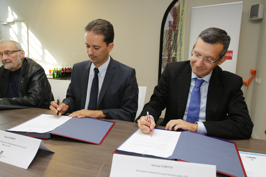 Sylvain Robert et Jérôme Yomtov, secrétaire général du groupe Numericable-SFR, ont signé une convention de partenariat.
