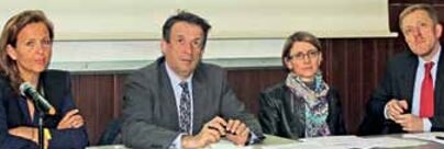 De gauche à droite, Mes Anne-Françoise Potié, déléguée à la communication et notaire à Templeuve, Patrick Vacossin, président du Conseil régional des notaires et notaire à Lille, Anne-Sophie Hébert, notaire à Lille, et Stéphane Bruniau, vice-président du Conseil régional des notaires et notaire à Hersin-Coupign