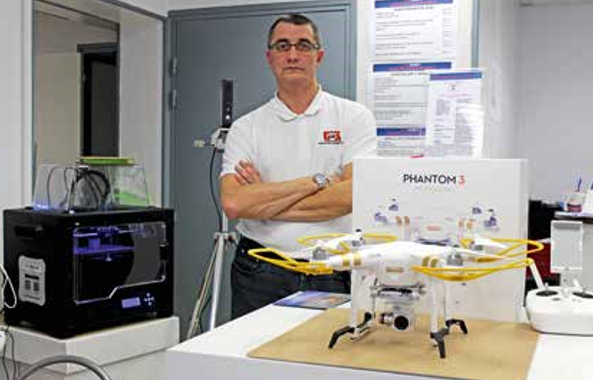 Lorsque l’on rentre dans le local d’E3 Digit, le regard est tout de suite attiré par le drone, au milieu, et l’imprimante filaire 3D, en plein travail. Pierre Debled, le gérant, en possède deux. « C’est différent de la poudre, reconnaît-il. C’est moins précis, mais c’est idéal pour les petites séries, les moyens formats et montrer ce que l’on sait faire. Elles sont destinées aux artisans et aux particuliers. » Magie de l’impression 3D Il est possible de fabriquer des bijoux, des petites pièces mécaniques à échelle réduite (comme un petit moteur), des pièces de rechange, des poignées de porte, des vidangeurs de baignoire, des fixations de caméra, des clés à molette, etc., à des prix défiant toute concurrence, comme un vidangeur de baignoire. « Il faut compter entre 4 et 6 euros : quasiment moitié moins cher que dans le commerce, indique Pierre Debled, ancien technicien dans l’informatique et la bureautique, notamment durant sept ans dans le Vimeu. Le fil est mélangé avec du carbone, du nylon, du polycarbone… pour apporter une résistance différente. Le marché est en pleine expansion. » Il prévoit d’investir dans une imprimante 3D à poudre d’ici un an, un investissement de plusieurs dizaines de milliers d’euros au service des PME/ PMI. Une imprimante 3D filaire est plus accessible (à partir de 1 200 euros). « Nous pouvons en vendre, faire un accompagnement, dispenser des formations et assurer la maintenance chez les clients », précise Pierre Debled. Un drone pour gagner en précision Autre prestation de service affichée par E3 Digit, le télépilotage de drone. Le gérant est habilité S1, S2, S3 et peut répondre à tout type de besoin des entreprises (après signature d’un contrat de confidentialité), comme des particuliers : séminaire, mariage, soirée d’exception, sinistre, mesure parcellaire pour l’agriculture, communication d’entreprise (visite virtuelle d’une entreprise pour l’intégrer notamment à un site Internet).