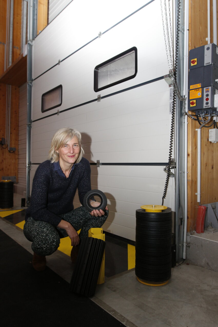 Ce valorisateur n’est autre que Roll-Gom, basé à Tilloy-les-Mofflaines dans l’Arrageois. L’entreprise fabrique entre autres des roues pour les poubelles. “Nous assurons toute la phase conception et faisons fabriquer les différents éléments absorbeurs de chocs“, poursuit Marie-Julie Rock.