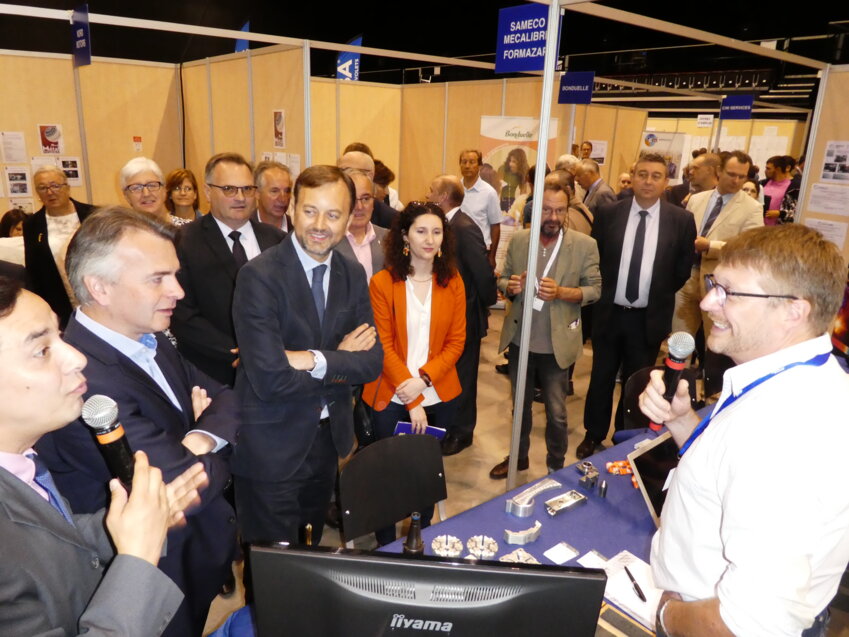 La grande salle du complexe Scénéo accueillait en ce 1er juin plus de 100 sociétés et organismes dédiés à la création d’entreprise, sur une surface de 3 000 m². Auparavant, les patrons et DRH présents avaient listé les postes proposés. C’est ainsi qu’un millier de propositions étaient répertoriées sur un grand mur et classées selon les domaines d’activité (secrétariat, comptabilité, transport, marketing…) pour faciliter les recherches des candidats. Une appli Smartphone optimisait leurs déplacements dans les différentes allées du Salon.