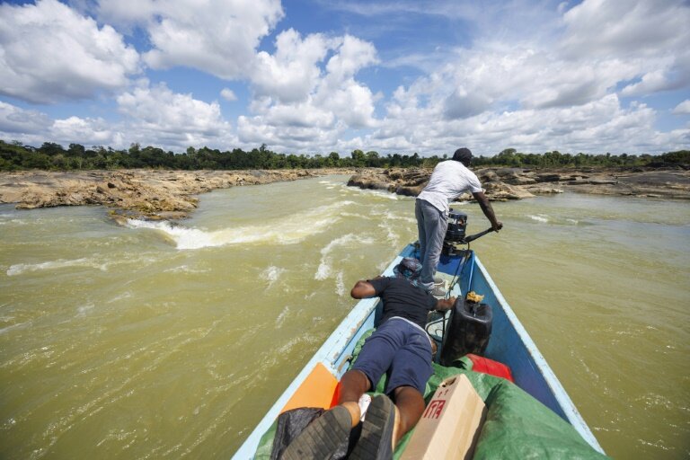 Pas un bruit de moteur sur le Maroni: habituellement véritable autoroute à pirogues, le fleuve, marquant la frontière entre Guyane et Suriname, est calme depuis des semaines. La sécheresse sévissant dans la région l'a transformé en un paysage autant aquatique que minéral.