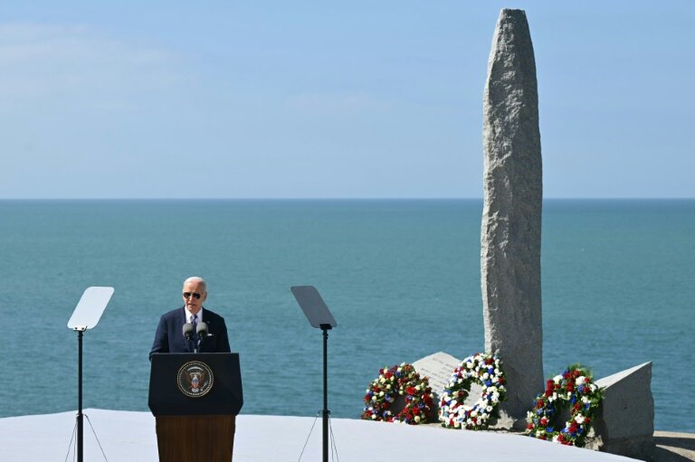 "Je refuse de croire que la grandeur de l'Amérique appartient au passé", a clamé Joe Biden depuis le site de l'une des plus féroces batailles du Débarquement, en se posant en garant de la démocratie et en gardien de la mémoire du D-Day.