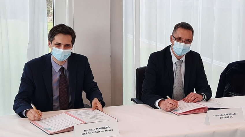 Mercredi 14 avril, c'était le top départ de 84 semaines de travaux pour l'aménagement du quai Joannès-Couvert sur le port du Havre. Ces travaux sont réalisés par le groupement d'entreprises Eiffage Génie civil, ETMF, ETPO, NGE Fondations et SDI. L'objectif : aménager le quai Joannès-Couvert pour accueillir la nouvelle activité d'assemblage d'éoliennes offshore Siemens Gamesa Renewable Energy (SGRE). Ces aménagements sont nécessaires pour permettre la manutention de composants d’éoliennes de dimensions et poids exceptionnels, "près de 100 mètres de long pour des pales et 800 tonnes pour les colis lourds", précise Haropa dans un communiqué de presse. La capacité du quai va donc être portée à 25 tonnes par mètre carré.