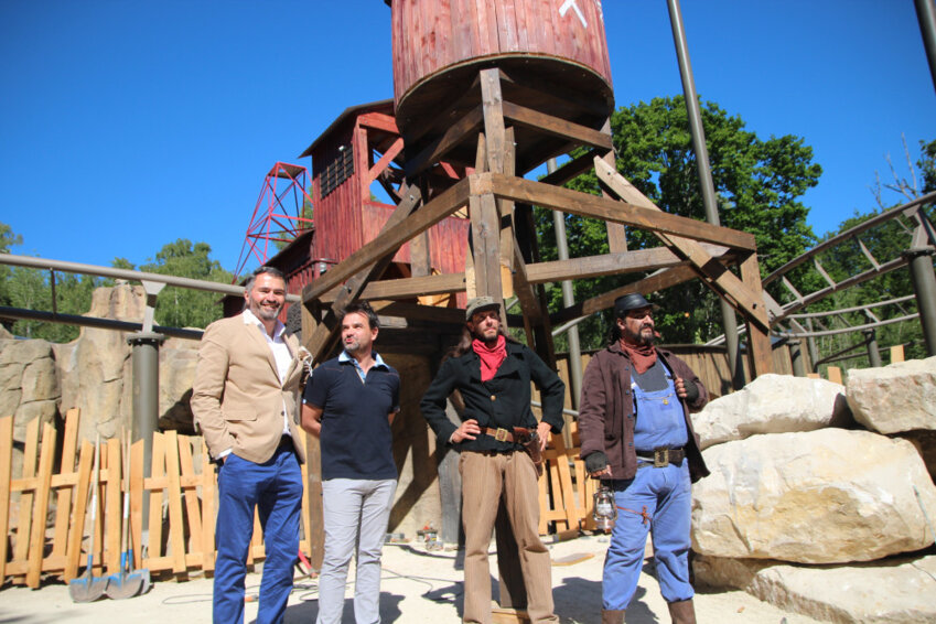 Fiers, impatients et... un rien excité ! Lundi 31 mai, à deux semaines de la réouverture les membres de l'équipe de la Mer de Sable, son directeur en tête, n'étaient pas peu fiers de présenter à la presse leur toute nouvelle attraction : la Silver Moutain. Ces montagnes russes, posées sur le point haut du parc, culminent à 15 m de hauteur, offrant un panorama incroyable sur tout le parc.