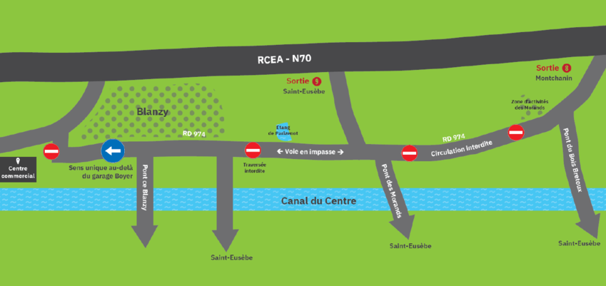 Une signalétique destinée aux cyclistes est en cours d’installation depuis la nouvelle portion aménagée de l’étang de Montchanin jusqu’à l’entrée de Montceau. Sur le même tronçon, des modifications de la circulation ont été mises en place.