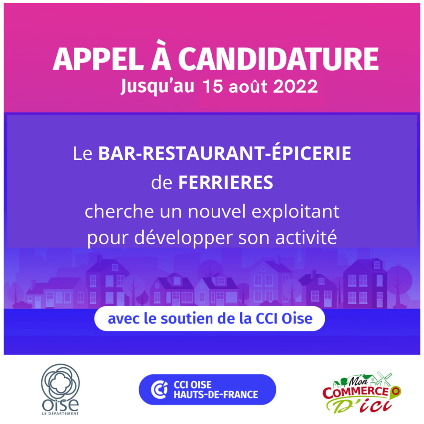 Rappelons que les candidatures doivent être envoyées avant le 15 août 2022 par mail à l’adresse suivante : commerce@cci-oise.fr
