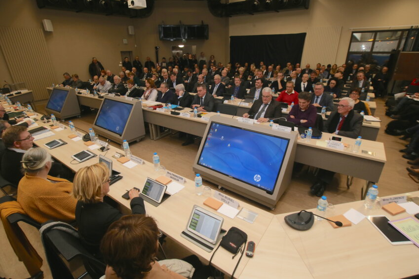 97 des 98 élus communautaires siégeaient, ce 5 janvier 2017, dans la salle dédiée de l’hôtel de l’ex-CASO. En septembre dernier, à Tournehem-sur-la-Hem, le projet avait été présenté et adopté à l’unanimité des élus des 53 communes des quatre intercommunalités, la CASO, le Pays d’Aire, la Morinie et le Canton de Fauquembergues.