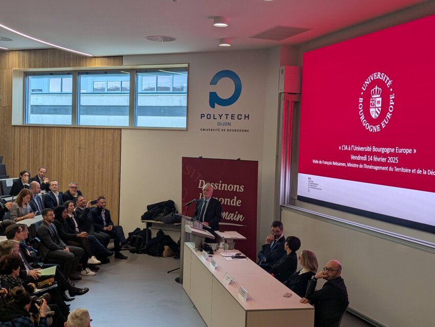 «L’intelligence artificielle ne va pas tout dévorer si elle maîtrisée et respectueuse. La technologie est un élément du progrès social et la nouvelle révolution industrielle qui est là passe par l’IA» a insisté François Rebsamen, ministre de l’aménagement du territoire et de la décentralisation. En visite à Dijon, il a fait étape à Polytech, en charge de l’accueil du programme CAIRE pour Citizen-oriented Artificial Intelligence training for a Responsive Education.
