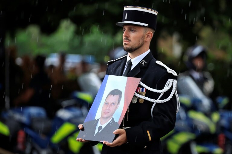 "Je l'affirme haut et fort, la France a tué mon mari. (...) La France a tué mon mari par son insuffisance, son laxisme et son excès de tolérance", avait dénoncé Harmonie Comyn, la veuve du gendarme, le 28 août, lors d'une cérémonie à Mandelieu-La Napoule, deux jours après les faits.