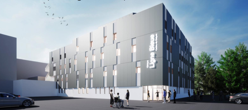 Le projet a été fondé sur le bâtiment Arc en Ciel, libéré en 2021 après le déplacement de la Maternité dans le Centre hospitalier Émile Durkheim. Répartie sur trois étages, la bâtisse a subi des changements architecturaux profonds alliant développement durable, réemploi des matériaux et insertion sociale. Démarré en avril 2022, le chantier s’est déployé sur une surface de 3 000 m2. Piloté par Jacques Guillot, économiste de la construction, le projet a été financé par Louis Pasteur Santé, qui a investi 7 M€ dans le terrain et les travaux et la maîtrise d’œuvre, 1,2 M€ dans l’isolation de toit et 1,1 M€ dans l’achat de 24 générateurs supplémentaires. Le pôle Santé la Ligne Bleu dispose de 235 lits et accueille 90 praticiens, 18 spécialités et 340 salariés.