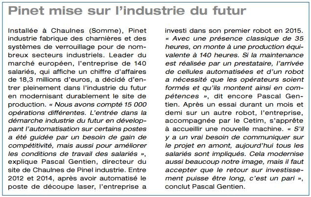 Confrontée depuis quelques années à une mutation galopante liée à la protection de l’environnement, aux défis technologiques et à un besoin de diversification, l’industrie française a fait le choix d’investir massivement dans la recherche et développement (25 milliards par an). Une orientation stratégique qui permet à ce secteur majeur de l’économie (3,1 millions d’emplois directs et 4,5 millions d’emplois indirects) de se tourner pleinement vers l’industrie du futur. Dans les Hauts-de-France, 4e région industrielle de l’Hexagone, ce sujet présente des enjeux primordiaux, puisque l’on compte 274 000 salariés dans ce domaine et que la région occupe une place de leader aussi bien dans le ferroviaire, l’automobile, l’aéronautique que la transformation de produits métalliques. Une position qui ne doit pas faire oublier l’émergence de nouveaux marchés porteurs.