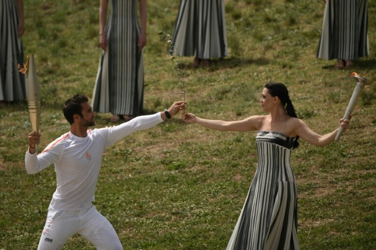 Allumée mardi à Olympie, la flamme a commencé en Grèce le périple qui doit la conduire jusqu'à Paris, via la Méditerranée, Marseille ou les Antilles.