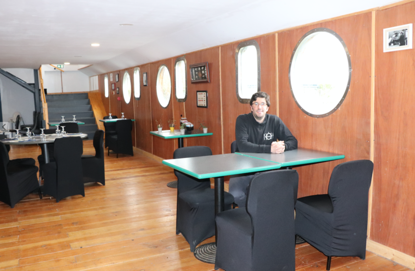 « C’est comme si on avait de l’eau jusqu’aux mollets, précise Antoine Sannier. J’ai eu cette idée de péniche-restaurant car il y avait peu de haltes le long de la véloroute vallée de Somme entre Amiens et Saint-Valery-sur-Somme, empruntée aux beaux jours par de nombreux marcheurs et cyclistes. Construire en dur était compliqué car nous sommes en zone inondable. »