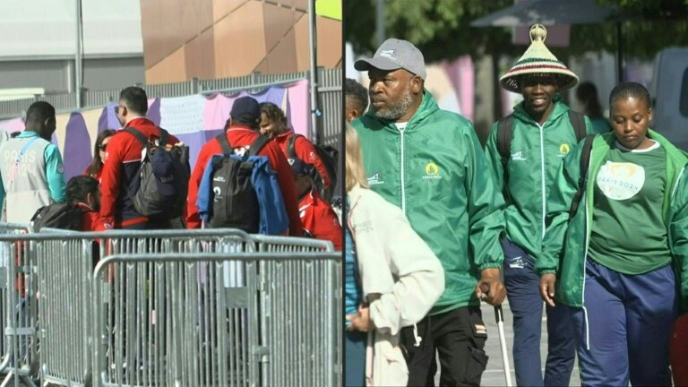 Canada, Emirats arabes unis, Ukraine: les vans et autocars, ornés des couleurs officielles des Jeux de Paris 2024, déposent les uns après les autres les délégations venues des quatre coins du monde, dans une ambiance calme.