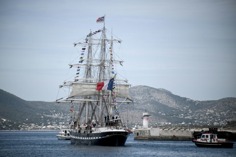 Samedi matin, le trois-mâts était accompagné au large du port du Pirée par la trière Olympias, une galère de combat antique qui appartient à la marine grecque, et par 25 voiliers, devant plusieurs dizaines de curieux qui observaient sous un soleil voilé la scène derrière des grilles de sécurité.