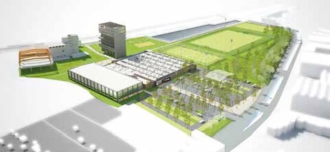 Situé sur les anciennes friches de la brasserie Terken, du dépôt de bus Transpole et d’une usine à gaz, l’énorme projet de la marque de sports collectifs du groupe Oxylane, Kipsta, devrait voir le jour en mars 2015. Après quelques mois de retard suite à des problèmes de dépollution, le chantier bat son plein. Début septembre, une étape a d’ailleurs été franchie : un terrain synthétique d’un hectare a été déroulé, pour accueillir, d’ici quelques mois, les amateurs de ballon ovale ou rond. Sur ce site à cheval entre Roubaix, Wattrelos et Tourcoing, Kipsta va installer ses équipes, mais surtout offrir aux habitants un complexe entièrement dédié à l’univers du sport collectif. Et la marque n’a pas fait les choses à moitié : 7,8 hectares – dont 4,5 dédiés à la pratique sportive avec 20 terrains –, 12 millions d’euros d’investissement, 900 m2de magasin, 150 arbres plantés et un pôle restauration… Les chiffres sont à la hauteur de cet équipement unique en France.
