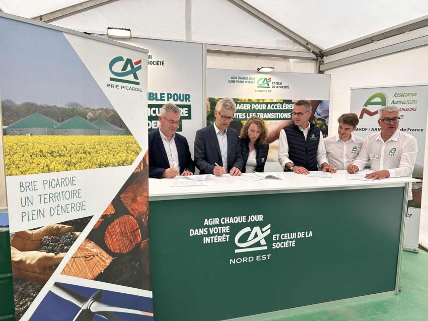 Premier acteur bancaire à avoir donné accès au crédit aux agriculteurs à la fin du XIXe siècle, le Crédit Agricole accompagne depuis 140 ans les agriculteurs dans toutes les grandes transitions et notamment dans leur nouveau métier d’énergiculteur. Dans la région Hauts-de-France, les 3 Caisses régionales du Crédit Agricole de Brie-Picardie, Nord de France et du Nord Est sont les financeurs de plus de 130 unités de méthanisation. Cette expertise a amené l’association des Méthaniseurs de la région Hauts-de-France à proposer aux 3 Caisses régionales du Crédit Agricole la signature d’une convention de partenariat pour travailler ensemble au développement de la filière. Cette convention vient d’être signée lors de la 1ère édition du salon Innov-Agri Hauts-de-France le 4 juin à Essigny-le-Grand dans l’Aisne.